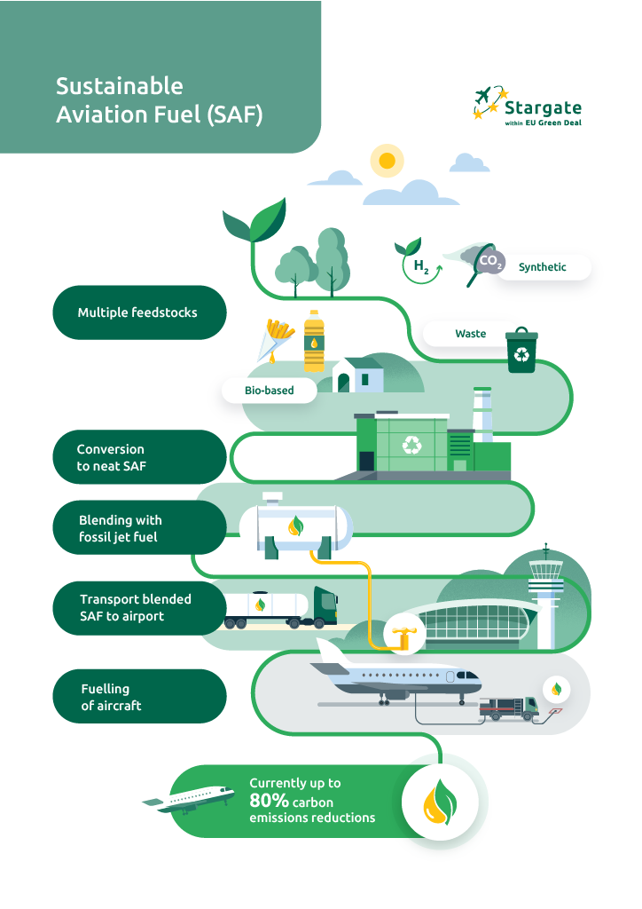 Sustainable Aviation Fuel (SAF) is jet fuel made from non-petroleum feedstocks—like waste cooking oil, plant residues, municipal waste, and even algae.